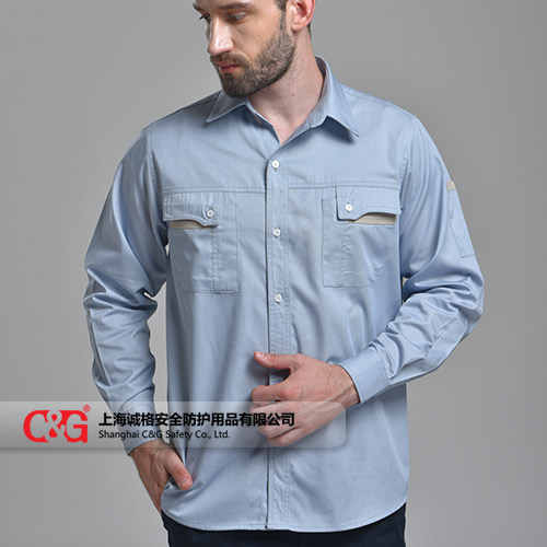 全棉或T/C麵料舒適耐磨 胸口雙口袋撞色設計實用且不失(shī)時尚 背部修身設計,袖口收緊方便安全 款式休閑白搭,整體(tǐ)展(zhǎn)現職場時尚與穿著舒適及安全性融為(wéi)一起。