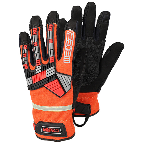 消防員搶險救援手套,采用芳綸針織布、牛皮、芳綸耐磨(mó)布、芳綸雙麵(miàn)針織布、防撞條等材(cái)質共同構(gòu)成,具備耐磨性能、抗切割性能、抗機械刺穿性能、阻燃性能、熱穩(wěn)定性能、靈巧性(xìng)能、抓握性能。